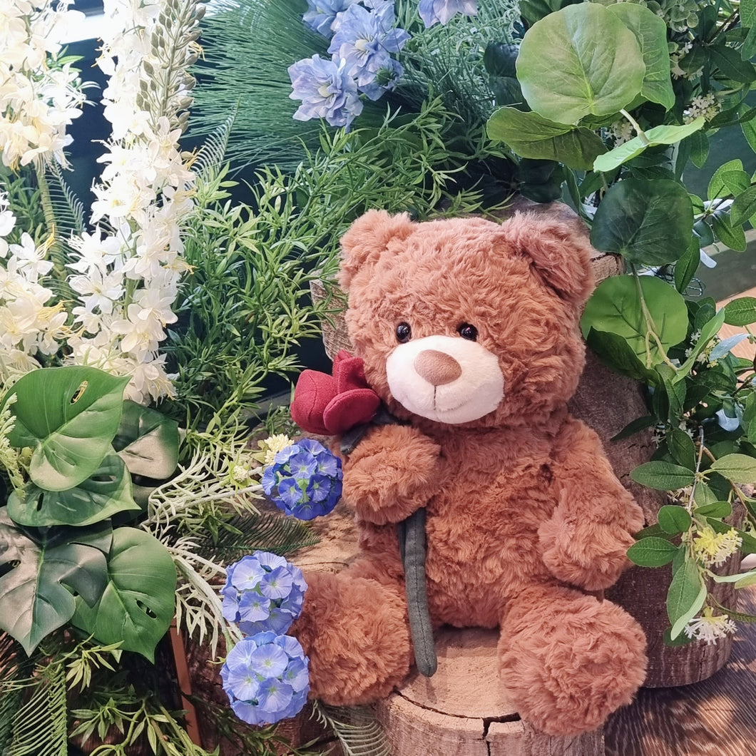 Teddy bear and roses basket